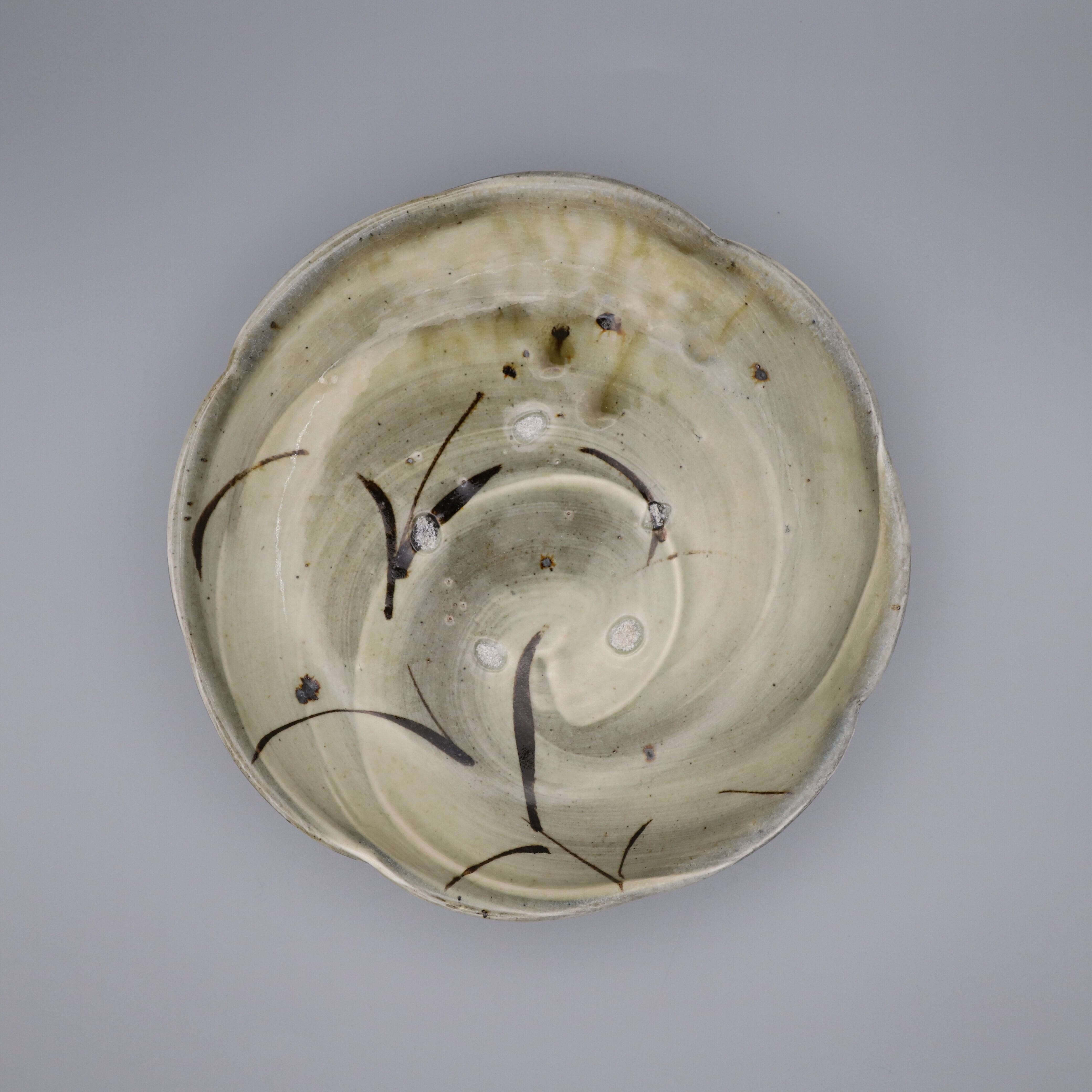 光藤 佐 穴窯焼成 絵刷毛目輪花鉢7寸② Tasuku Mitsufuji, Brush-marked rinka bowl, 7 sun (~21 cm) #2