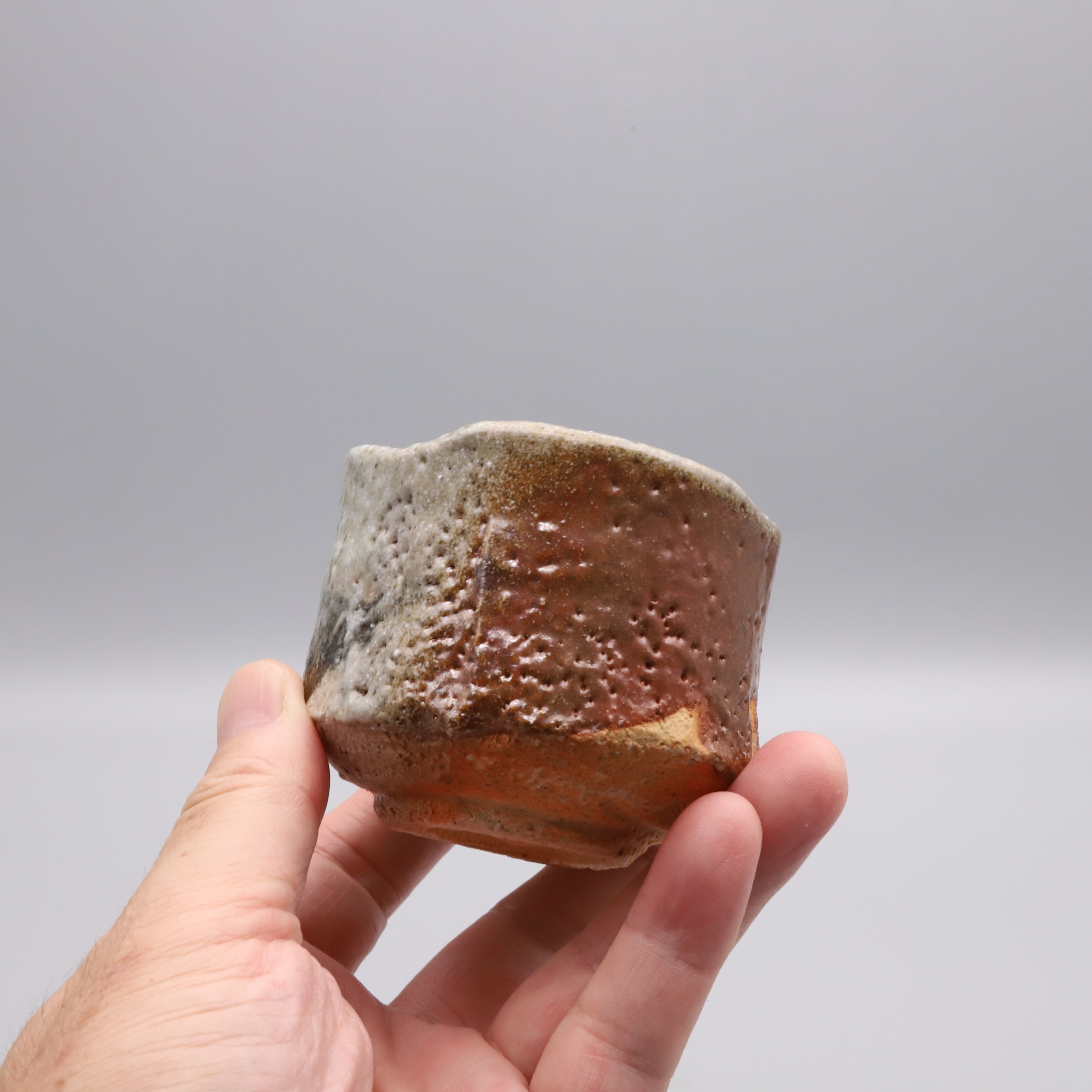 Aka (Red) Shino Guinomi (sake cup) made by Tetsuo Ogawa and fired in an anagama (wood-fired) kiln.