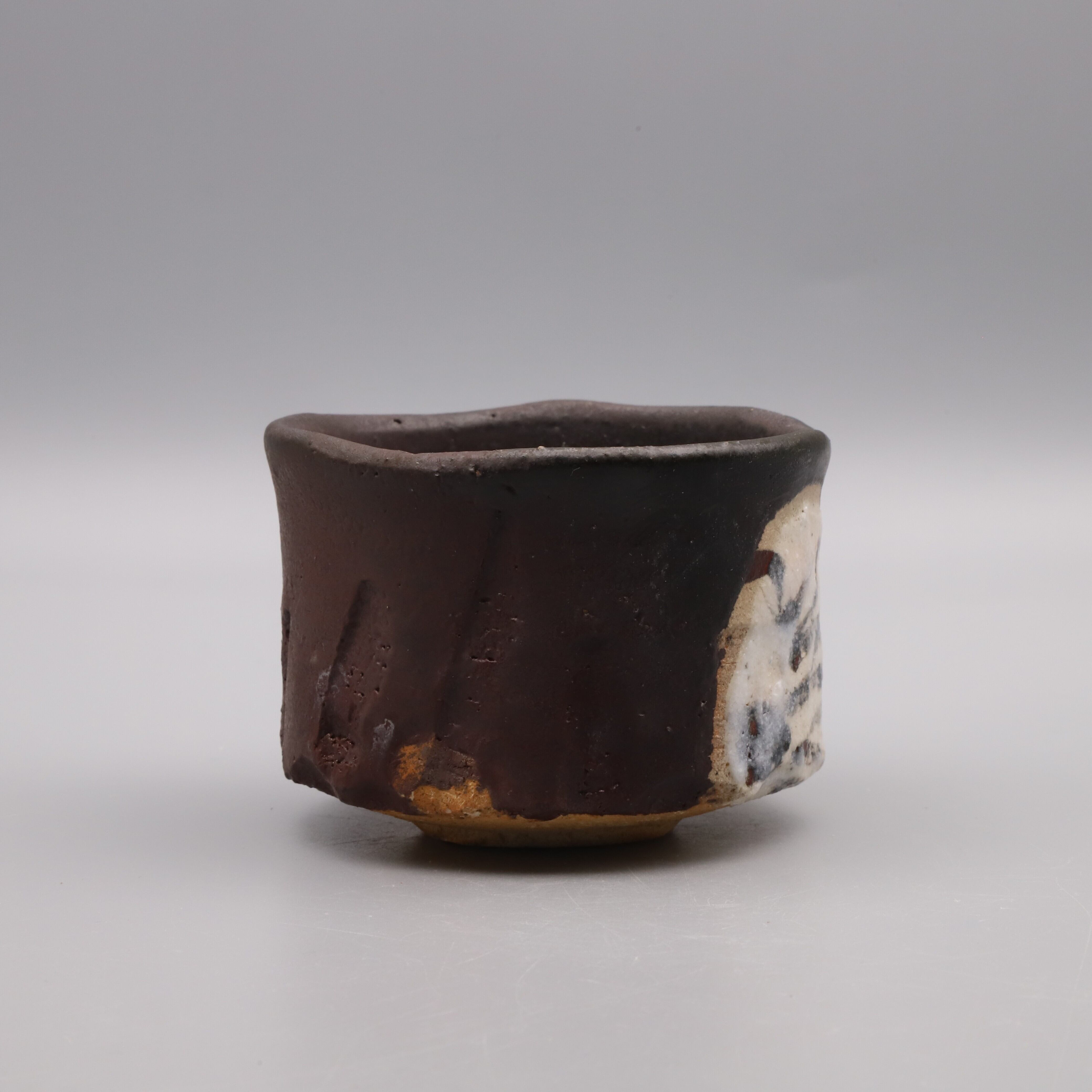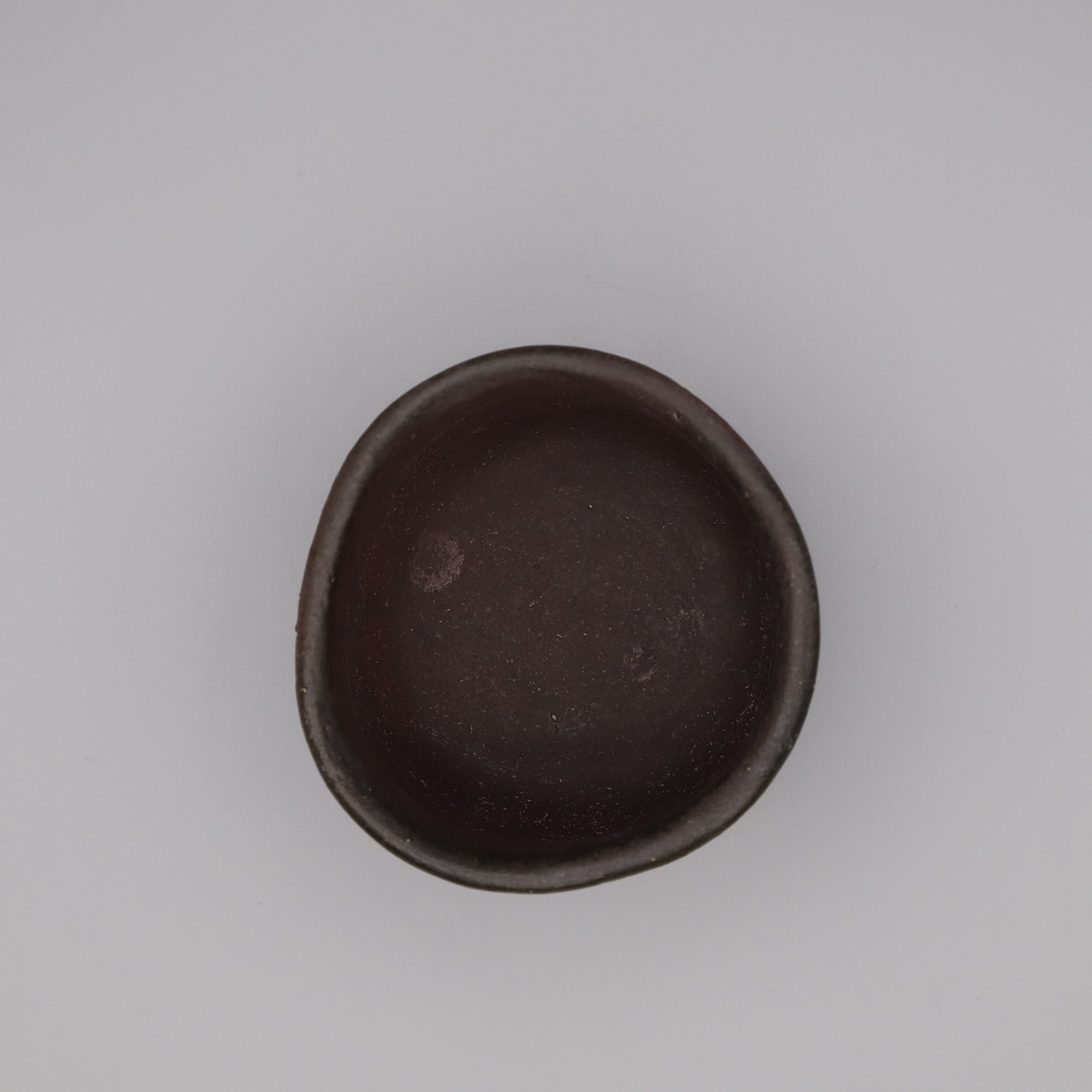 小川 哲央作陶、穴窯焼成 黒織部ぐい吞です。
