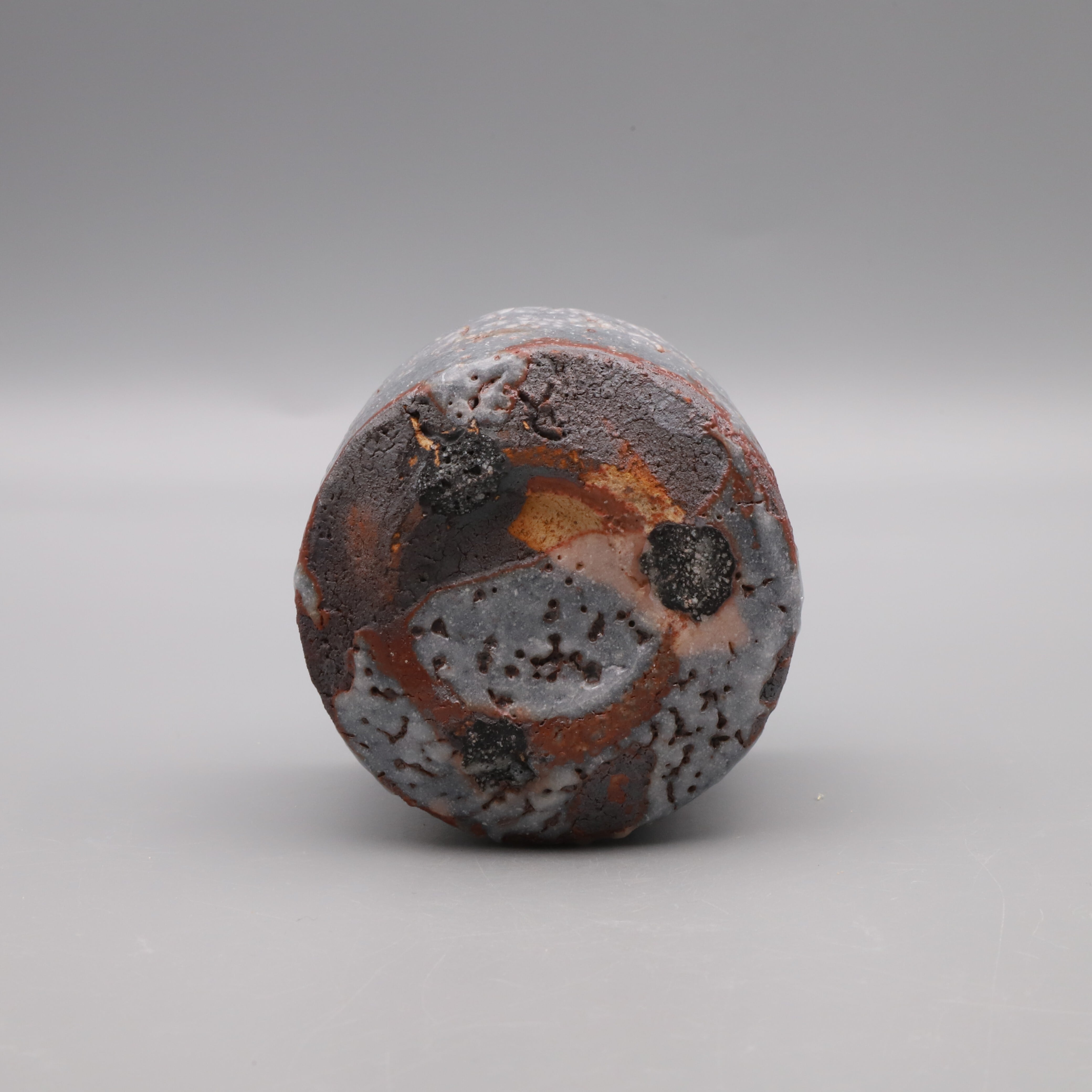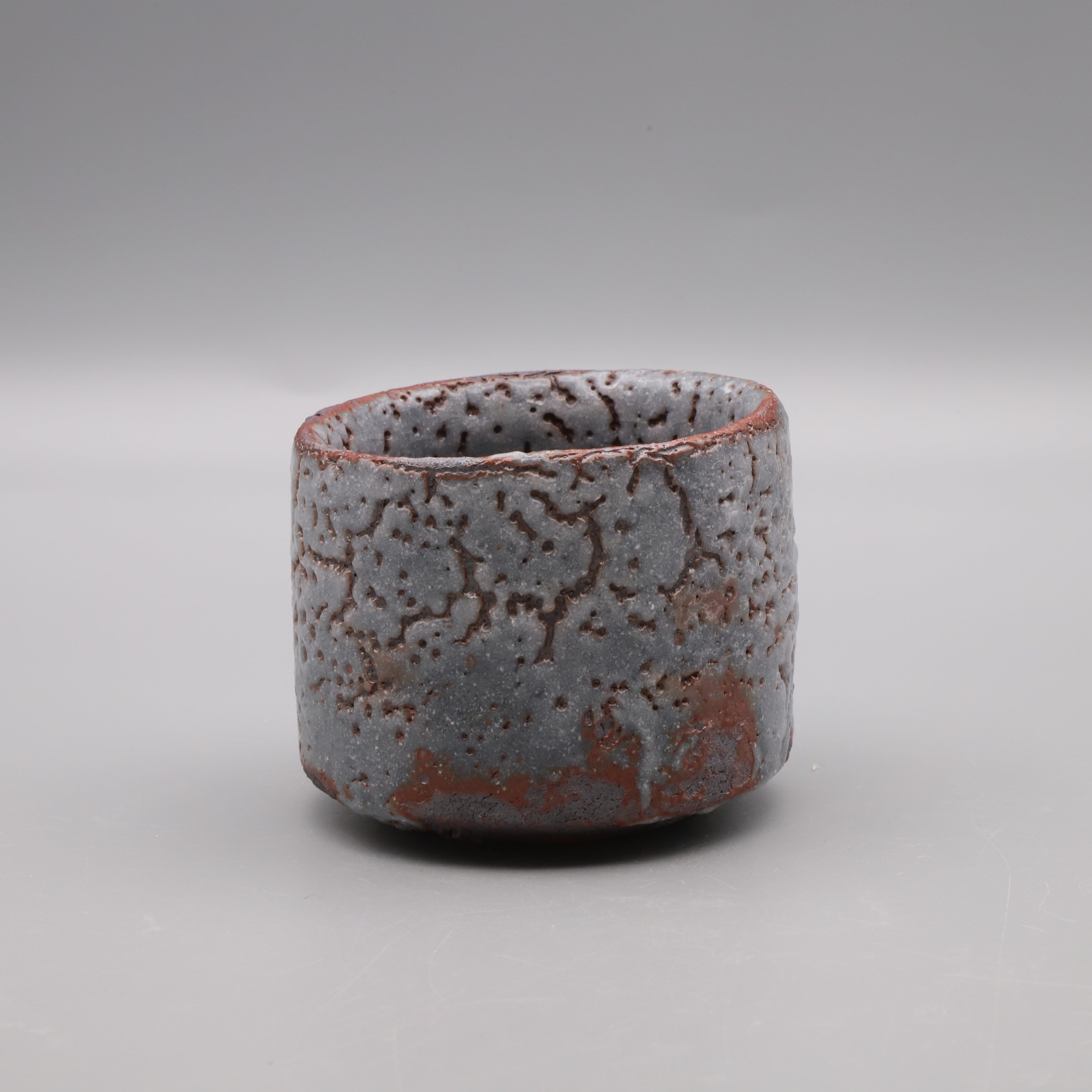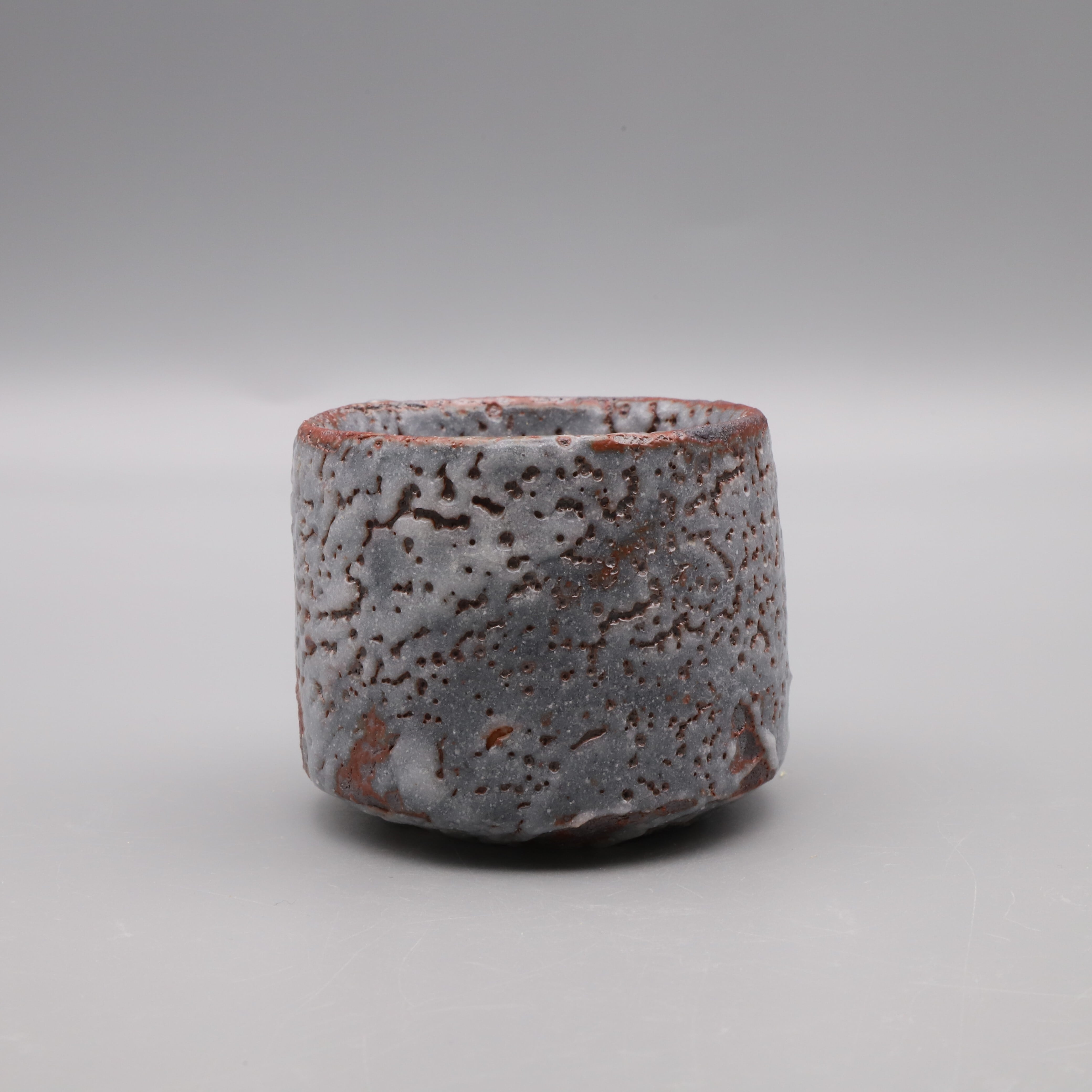 關 共歩作陶、鼠志野ぐい吞です。しっかりとした鼠色の地肌に薄く掛けられた白釉が美しい景色を作っています。少し小ぶりながらもずっしりとした重厚感があります。本作品は2025年の作品で、同年に三越で開催された共同個展にも出品されました。