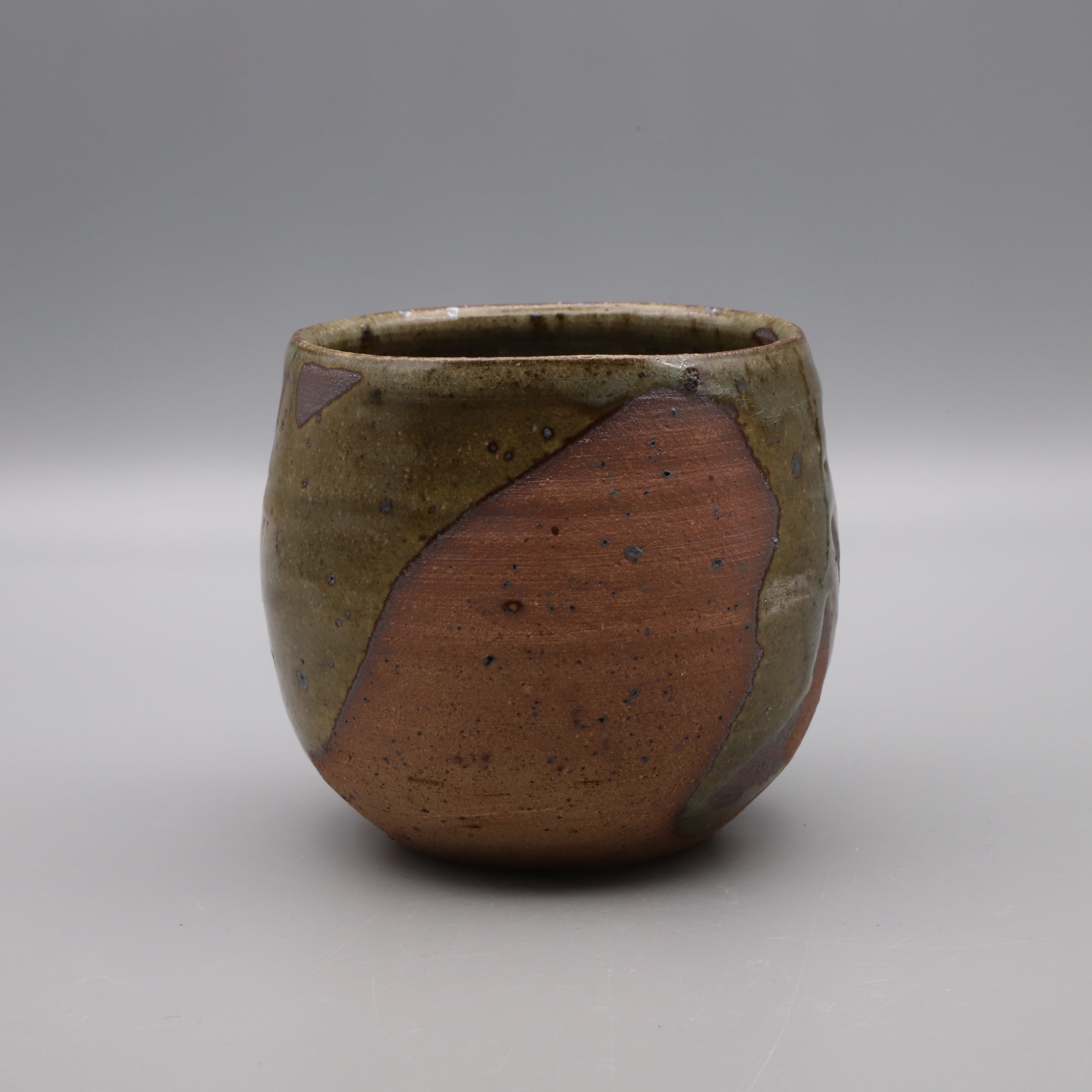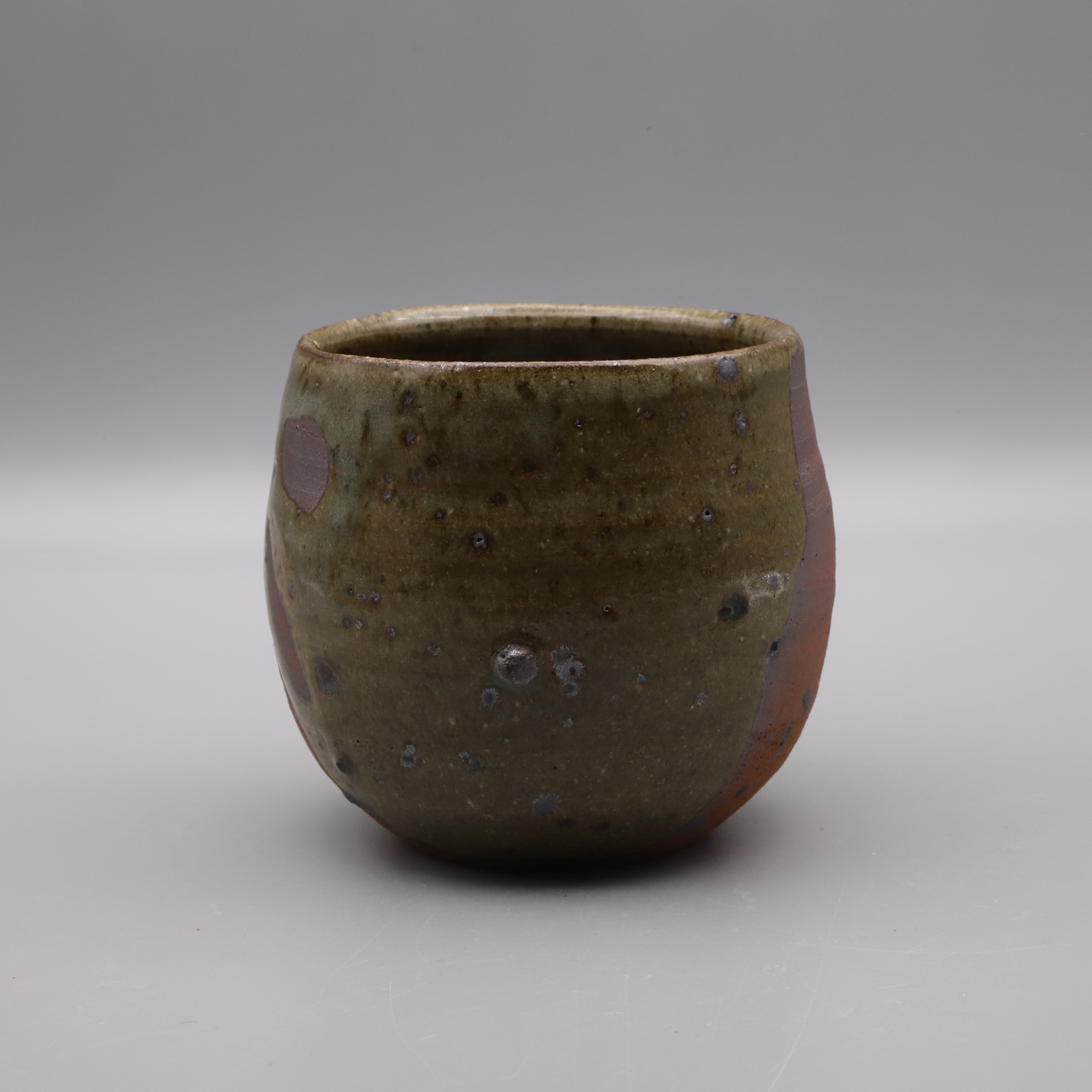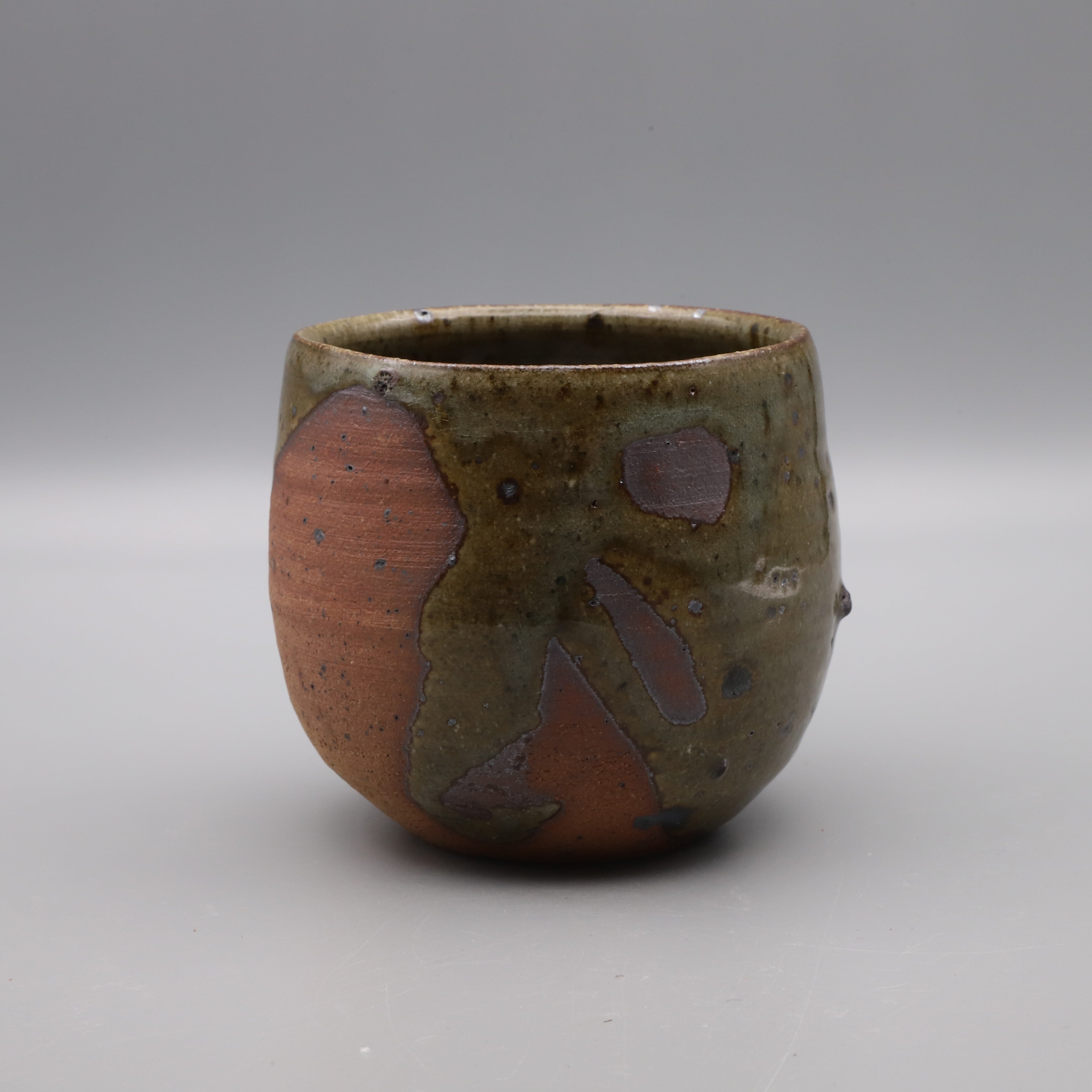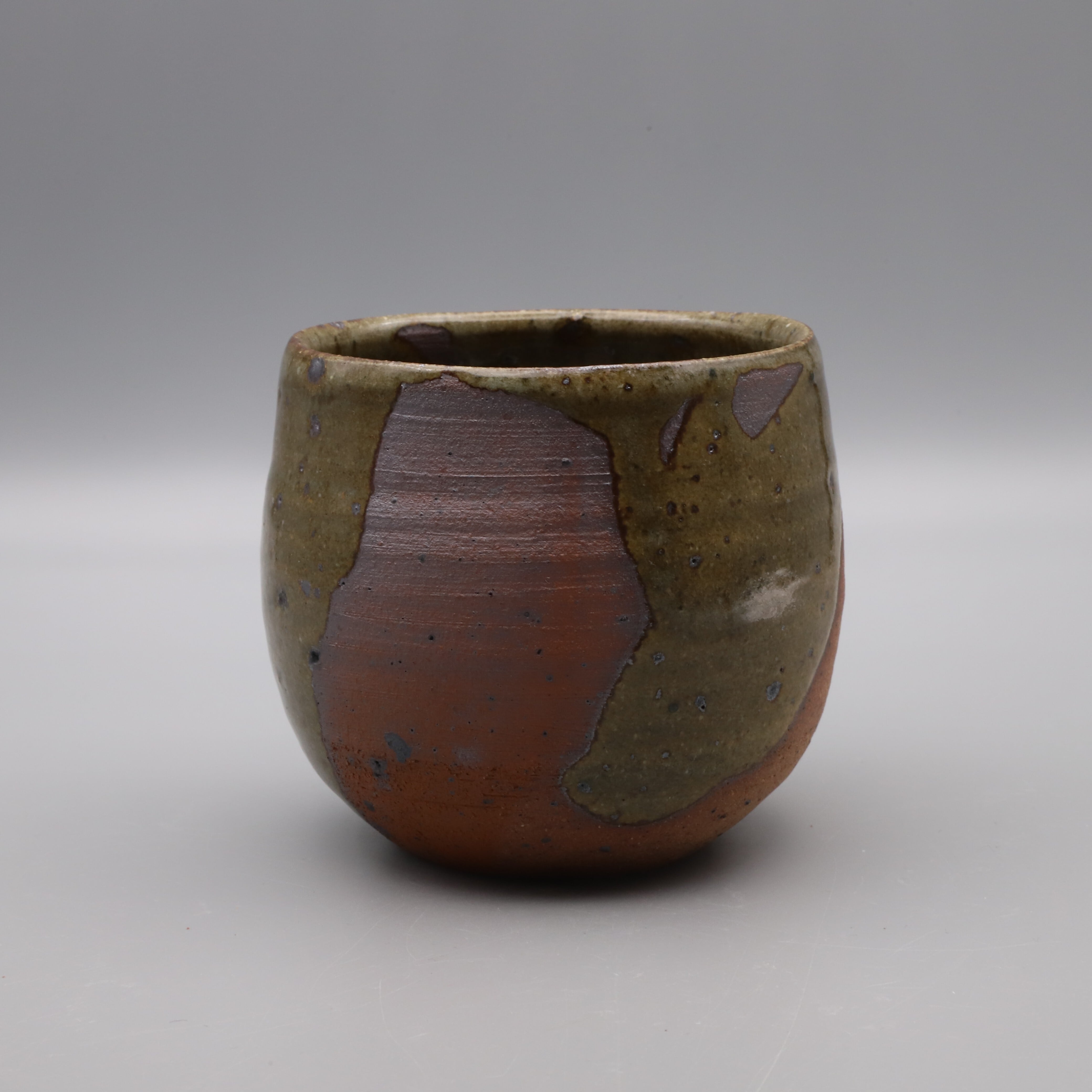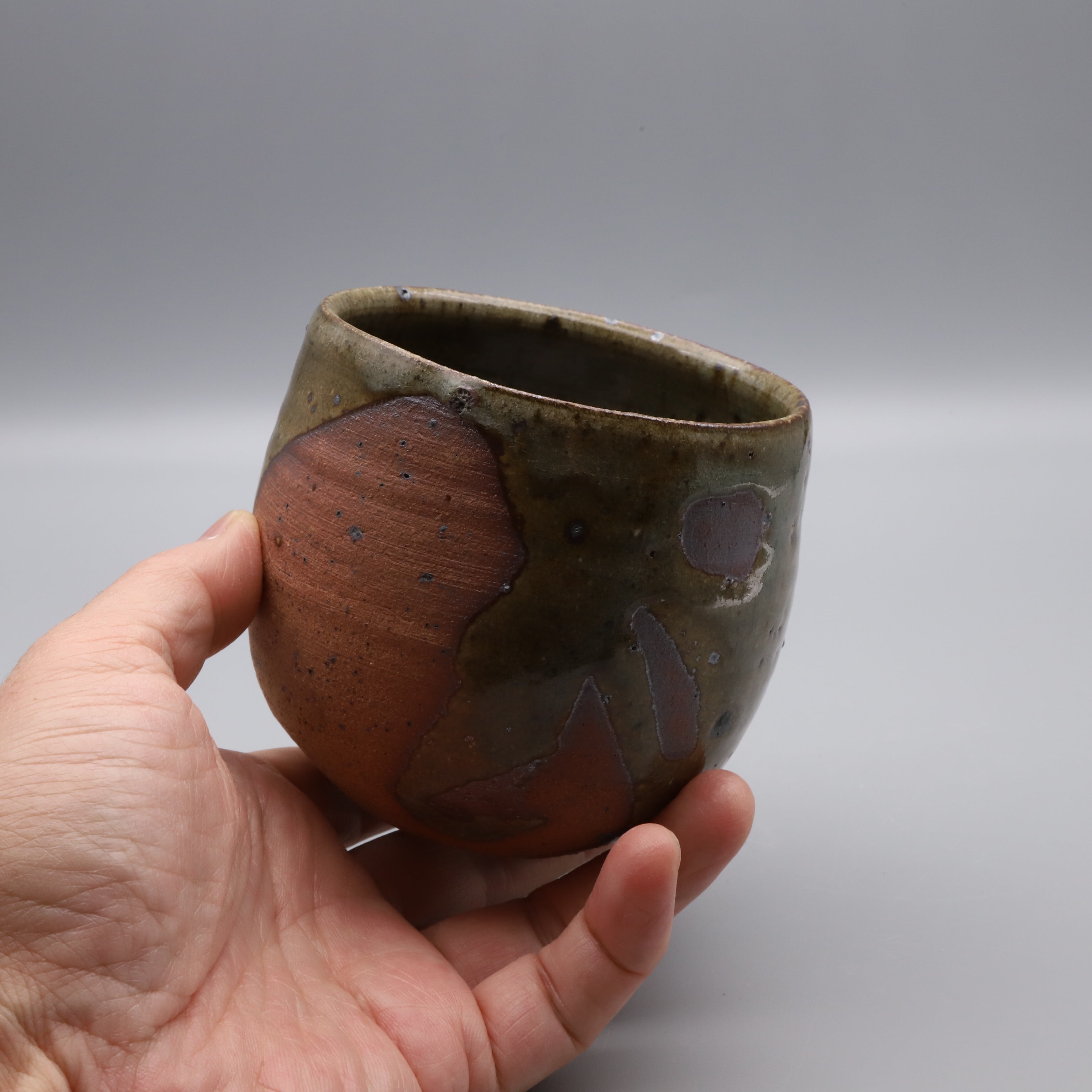 旭 守男作陶、灰釉 焼酎杯です。お洒落なバーでロックグラスとしても使われています。もちろん湯呑にお使いいただいても趣きがあります。荒土を使った伊賀風の地肌が、自然な風合いの灰釉によって美しい風景を作っています。