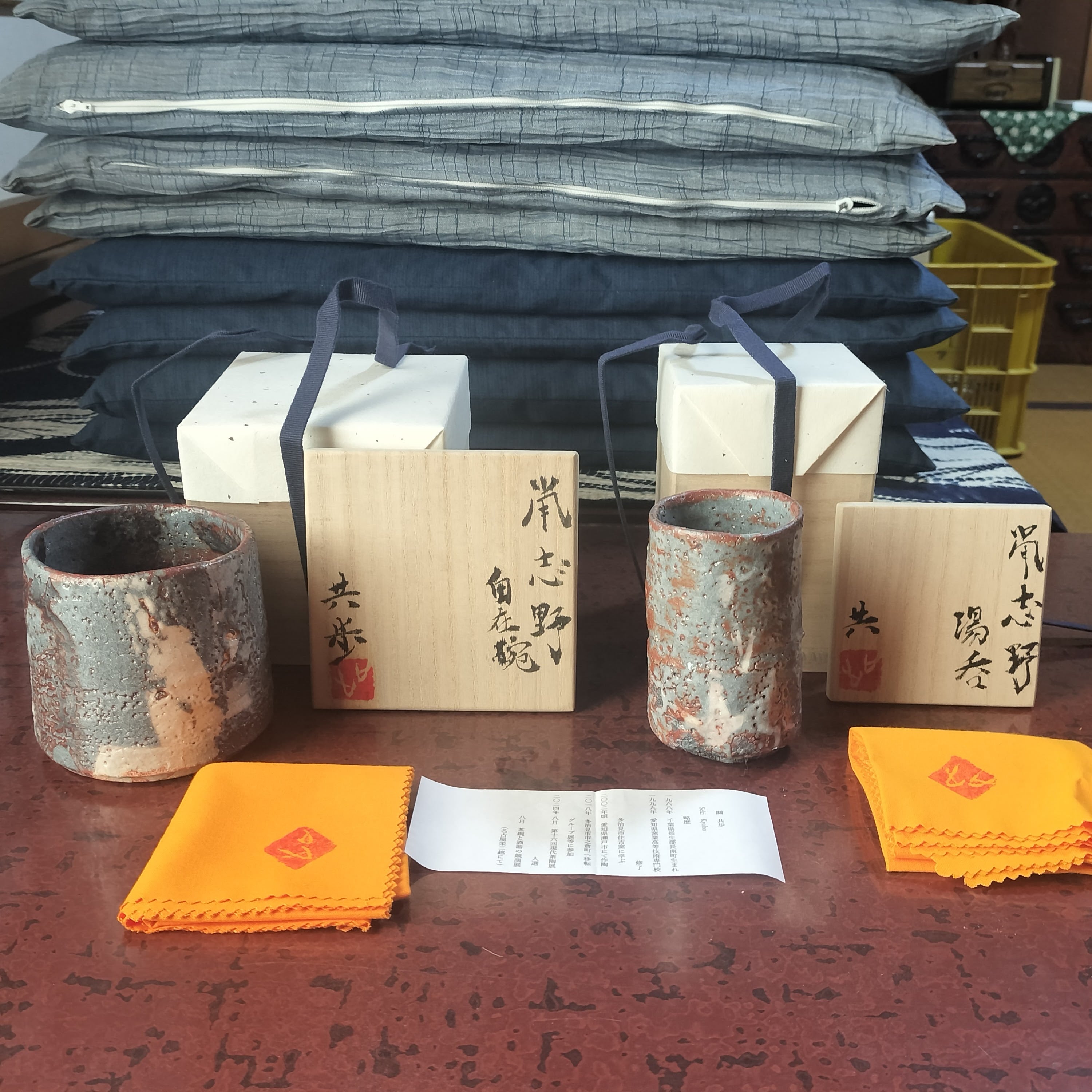 Nezumi shino flexible bowl and teacup made by Kyoho Seki. This is the dedicated page for special customer.